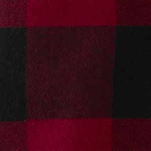 Includes long sleeve bodysuit, red buffalo check button down shacket with black sherpa collar and black pants