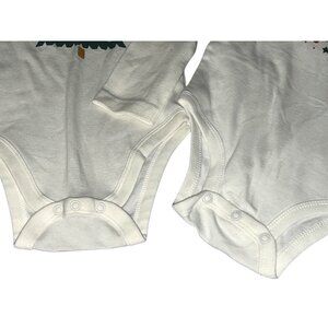 Adorable set of two long-sleeve bodysuits featuring holiday-themed prints. Designed for comfort with soft fabric and snap closures for easy changes.
