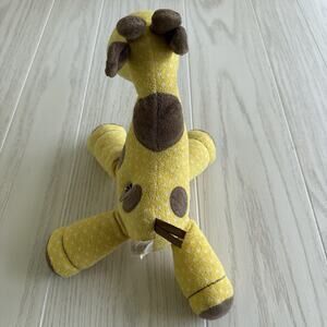 Adorable Carter’s Just One Year giraffe plush crib toy in yellow and brown. Wind-up musical mechanism plays soothing music (no batteries required). Soft, cuddly design perfect for nursery decor or crib use. Measures approximately 10 inches tall.