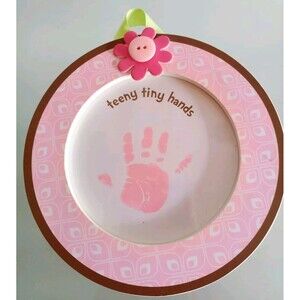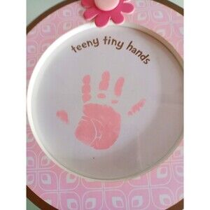 Carter's Just One Year teeny tiny hands frame for baby girl's handprint. 6" in diameter. Made in 2009. New, original box not included.