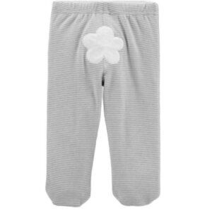 -white long sleeved top with bunny, chick and carrots/ gray and white striped soft footed pants