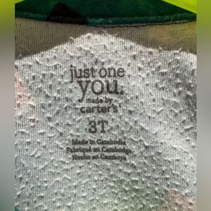 Carters Just One You Christmas Santa 2-Piece Pajama Set. Boys Size 3T. Good condition but does have piling to the fabric. See pictures for condition and any imperfections. Non-smoking home.