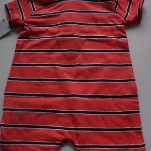 Carter's Just One You boys 3 month one piece. Orange, blue and white stripe with helipcopter applique. Snaps at bottom, 2 buttons at top. New with tags.