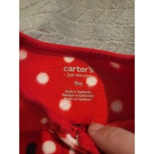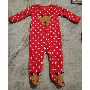 Carter's Just One You Red & White Polka Dot Baby Reindeer Footed Pajamas 9M
