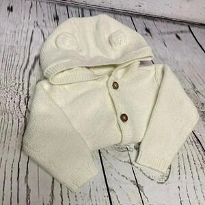 Keep your little one cozy and stylish with this Carter's Just One You sweater. The white cardigan features a solid pattern with a hood and long sleeves, perfect for travel or casual occasions. The button closure and unisex design make it a versatile addition to any baby's wardrobe.