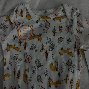 Adorable woodland-themed baby onesie by Carter's Just One You. Features a charming mix of animals and nature in white and orange. Perfect for your little one's everyday adventures.