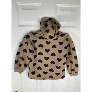 Carters Kid Brown & Black Heart Pattern Fleece Hoodie For Children Size 7