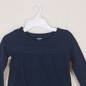 Carter's Kid Long Sleeve Cotton Top Tee Size 4 Navy w/ Applique