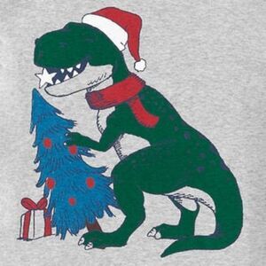 Gray long sleeve top with dinosaur graphic on chest with a matching blue pant