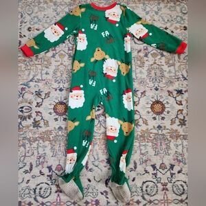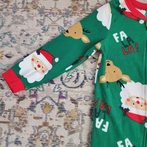 Carters Kids Christmas Green/Red Fleece Footed Pajama Blanket Sleeper, sz 5t/5a