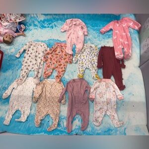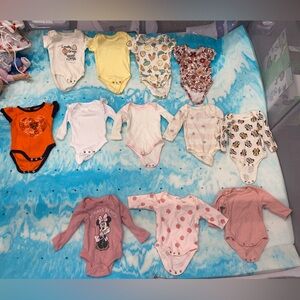 Gently used 0-3 month baby clothes. 1 or 2 pieces lightly stained but might just need another wash. No holes or rips. Pet free smoke free home. Carter’s, Disney, target.