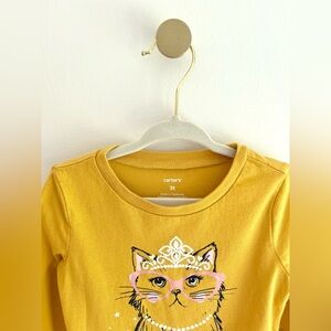 Carter's Kids Mustard Color Cat Princess Long Sleeve “Purrfect” Tee Girls 3T