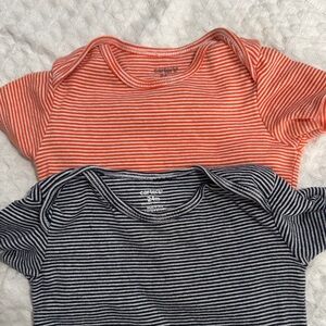 Charming Carter's tees with coral and navy stripes. Soft and stylish for any occasion.
