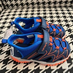 This listing is for a NWT's Carter's Kwando Toddler Boy Sport Sandals in size 10, in blue/orange. Give them style and comfort with every step by wearing these Carter's Kwando Toddler Boy Sport Sandals.