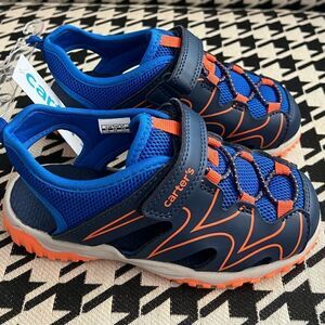 This listing is for a NWT's Carter's Kwando Toddler Boy Sport Sandals in size 11, in blue/orange. Give them style and comfort with every step by wearing these Carter's Kwando Toddler Boy Sport Sandals.