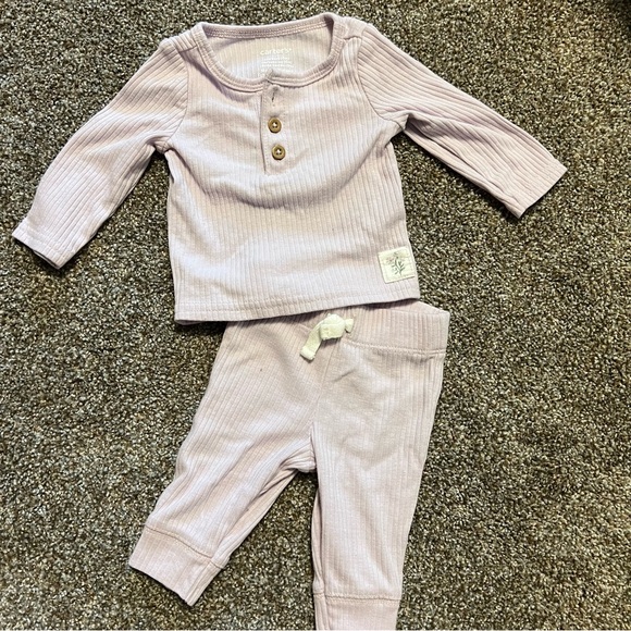 Charming lavender ribbed baby set. Features a cozy top and matching pants. Never worn but washed, should have kept the tags on, more baby items in my closet bundeal and save!