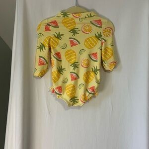 Adorable baby outfit with vibrant citrus design. Soft and comfortable fabric. Never worn! Excellent condition! No stains or tears.