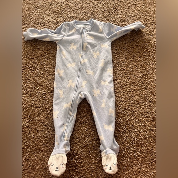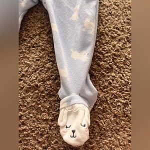 Soft and cozy footed one piece. Features cute animal design. Easy zip closure.