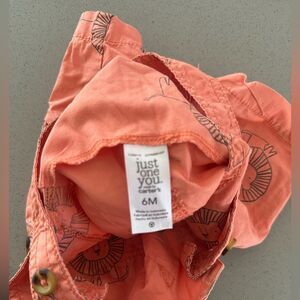Carters Lion Print Orange Romper Overall size 6 months in excellent pre owned condition. Has snap buttons for easy wear and diapers changes.