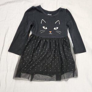 Carter’s Long Sleeve Black Cat Dress 2T Halloween Tulle Overlaying Sparkles