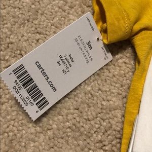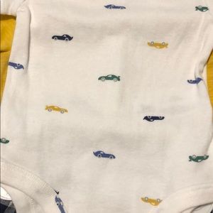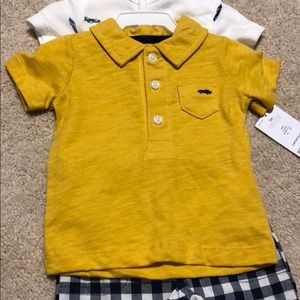 3 piece set by Carter’s, white onesie with cars, yellow polo and gingham shirts. Size 3M. Never worn- new with tags. Perfect for baby gift!