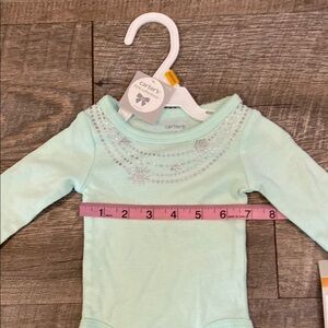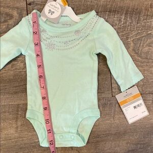 This adorable mint green long sleeve bodysuit from Carter's is perfect for your little one. Made with soft fabric, it ensures comfort and style.
