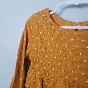 Carter's NWT Toddler Girl 5T Mustard Golden Yellow Long Sleeve Dress White Dots
