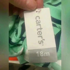 Carters NWT green with blue & white striped romper has snaps and collar 18 mths