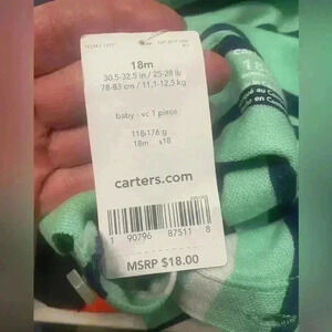 Carters NWT Green with blue & white striped romper with snaps & collar. Baby boy 18 months. SFPF HOME