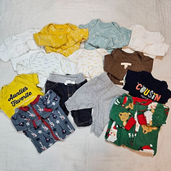 Carters Newborn Baby Boy Clothing Lot 13 Pieces Bodysuits Sleepers Pants
