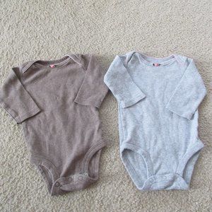 Carters Onesie Bundle Girls Size 3M Brown Gray Long Sleeve Infant Lot of 2