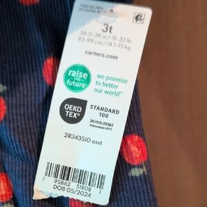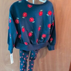 NWT Adorable 3T blue outfit with red apple pattern. Perfect for playful days. Ribbed stretchy leggings.