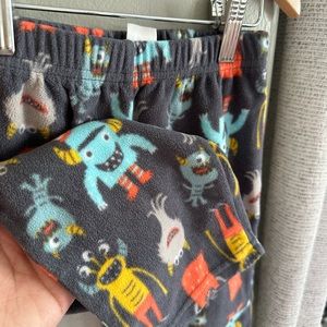 Top is cotton and bottoms are fleeced. Gently worn!