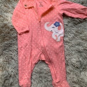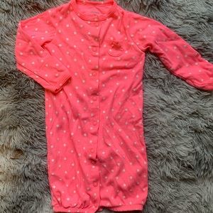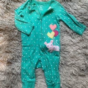 5 pairs of Carters one piece pajamas. Worn once or never worn. Pink with white polka dots has mitten cuffs and can be worn as a gown or one piece. All size 0-3 months. Open to offers