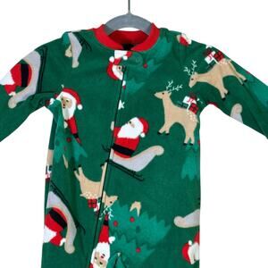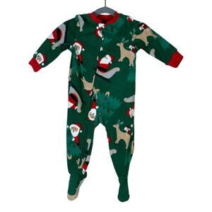 Carter’s Pajama Onesie Baby 12M Green Santa Reindeer Footed Holiday Christmas