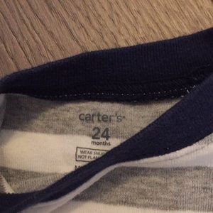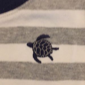 Grey and white striped cotton pajamas with navy accents. Embroidered turtle. No holes or stains. Smoke and pet free home. Fast shipping! Bundle and save!!!