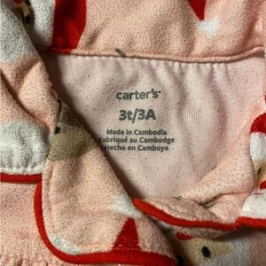 Carter’s pink Santa and reindeer pajamas. Size is a 3T.