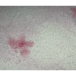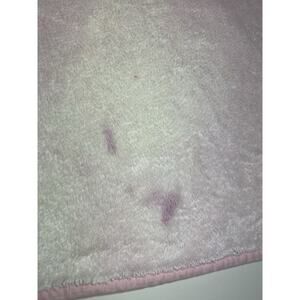 31x43 blanket in clean preowned condition with no holes or tears. PLEASE NOTE faint purple staining in the upper right area of front side, shown in 4th listing photo. Brand and care tags are missing also. No issues other than those two. Please view ALL photos prior to purchase.