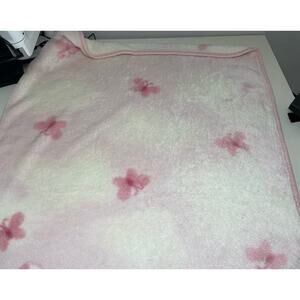 Carters Pink Bunny Baby Blanket Plush Fleece Rabbit Flowers Butterfly *READ*