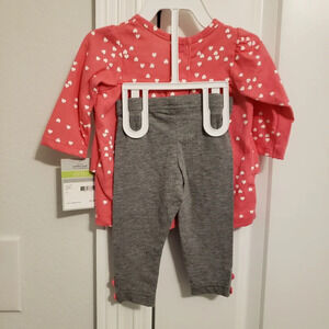 Carter's Pink Hedgehog and Hearts Ruffle Top and Pants set baby girl 3M