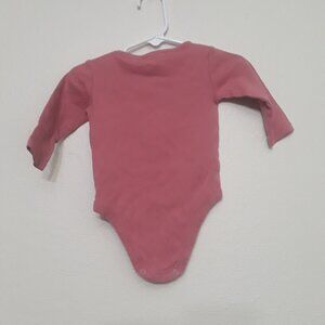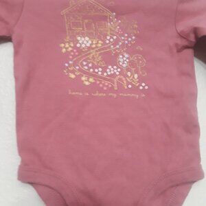 Adorable pink bodysuit with charming house and floral design. Long sleeves. Snap closure for easy dressing.