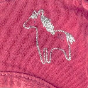 Adorable pink ruffled top for kids by Carter’s. Features a cute pony horse design. Perfect for a playful and stylish look.