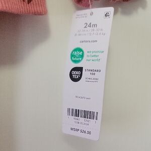 Adorable pink outfit from Carter's, perfect for a fall or spring day. Features a charming pattern that kids will love.