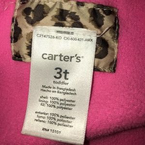 Carter's Pink Tan Brown Leopard Hooded Winter Puffer Coat 3T
