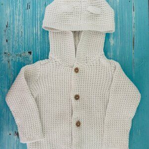 Super Adorable Light Pink Carter’s Baby Cardigan. Crafted in super soft cotton sweater material, this hooded cardigan makes the perfect layer. Perfect little sweater to keep your little one warm. Like New Condition except the white cardigan has a flaw (please see picture).