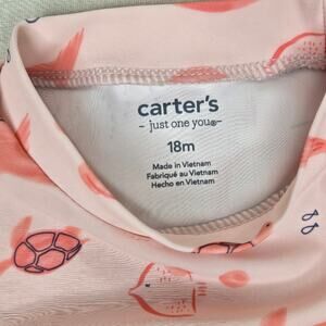 Adorable pink/peach swim set by Carter's featuring a charming whale print. Perfect for fun days at the pool or beach.