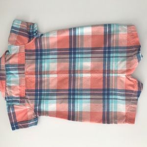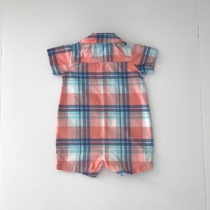Like new, never worn. Great for Spring! Plaid partial button down with collar and short sleeves. Snaps at crotch and legs. Front single pocket.