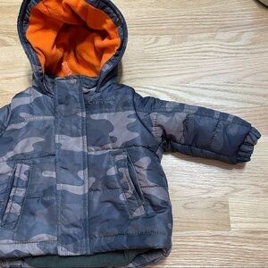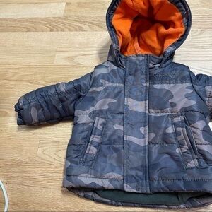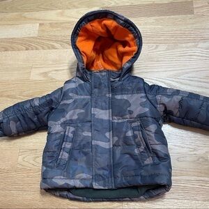 Carter’s Puffer Jacket 12 mos Full Zip Camouflage Green Orange Hooded