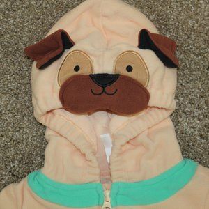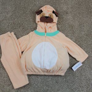 Adorable Pug/Dog Halloween Costume by Carter's. It is BRAND NEW WITH TAGS!! Comes with the main hooded fleece top section and matching fleece pants. Costume top zips at the front and has padding around the center. Has a little tail in back. So Cute!