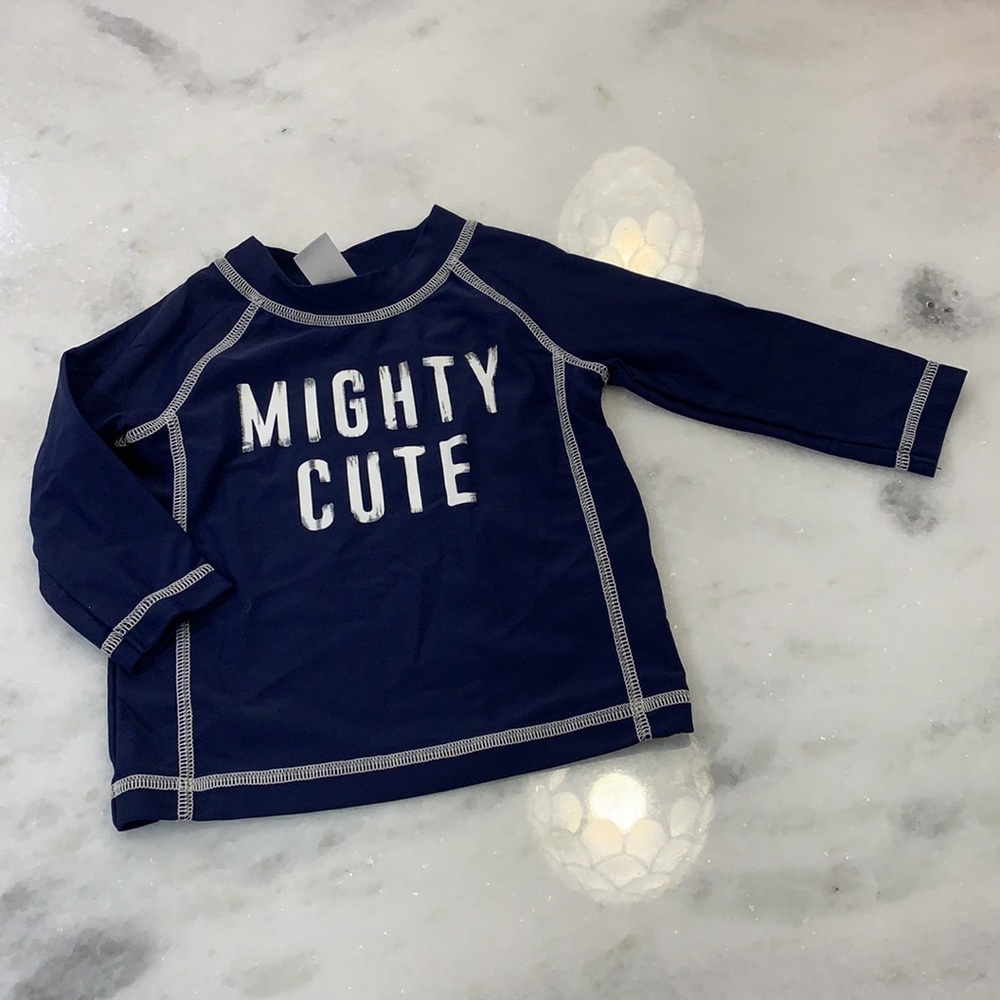 Carter’s | Navy long sleeve rashguard. White writing: “MIGHTY CUTE”. NWOT. 6 months.